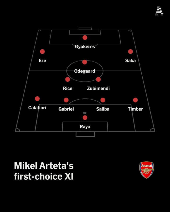 前锋:埃泽、约克雷斯、萨卡