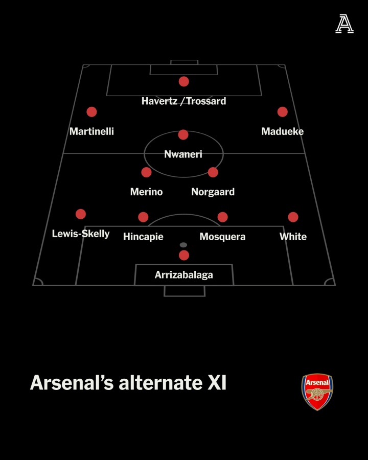 TA列阿森纳第二套首发11人: